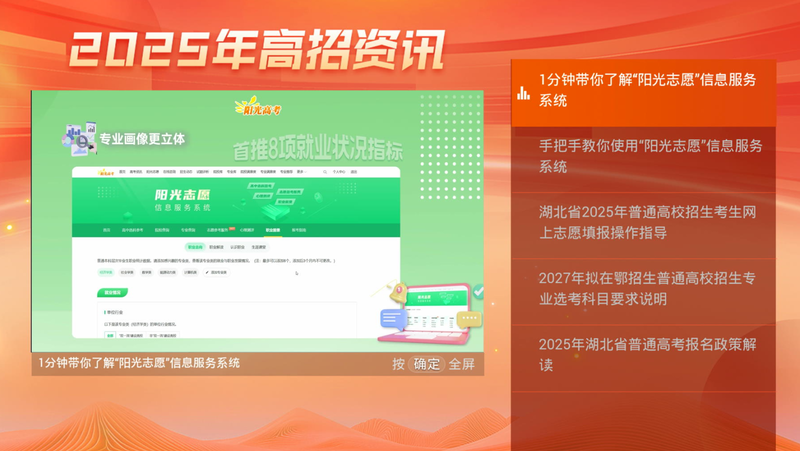 一是内容生态再升级。依托长江云双屏互通机制,专区整合湖北广电优质高校垂类资源,引入高校授权宣传视频、招生计划解析及王牌专业深度解读,同步接入湖北省教育考试院独家授权的“楚小招”系列官方科普视频,构建全维度信息库。原创“招办主任说高招”短视频栏目,实地走访高校,一对一访谈招办主任,聚焦最新政策解读、校园及专业特色介绍,集权威性、时效性和关注度于一体。