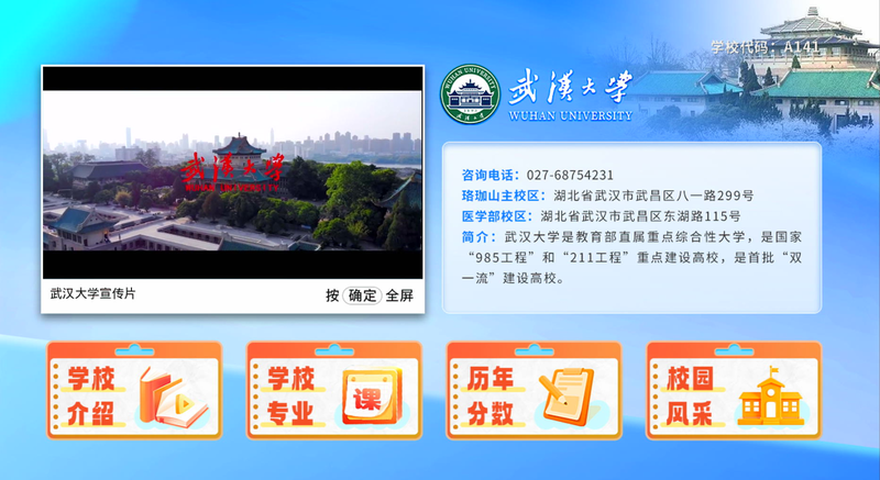 今年高考季,长江云TV立足湖北高校资源,在去年“高招专区”基础上推出升级版 “上大学”专区。联动省内超40家高校,充分发挥IPTV大屏覆盖优势,通过视频、图文等多元形式输出公益性高校资讯,在满足用户多元化内容需求的同时,也为高校提供了专属展示平台。同时,实现了四大功能维度提升。