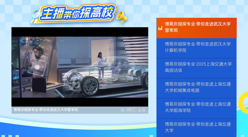 三是服务模式常态化。联动高校推出“AI数字人看校园”系列内容,复制“高招季”模式,不定期围绕“开学季”“升本读研”等主题调整专区推送内容,既为本地用户提供更丰富全面的高校内容,也为各高校提供展示窗口与渠道,提升大屏价值认可度。
