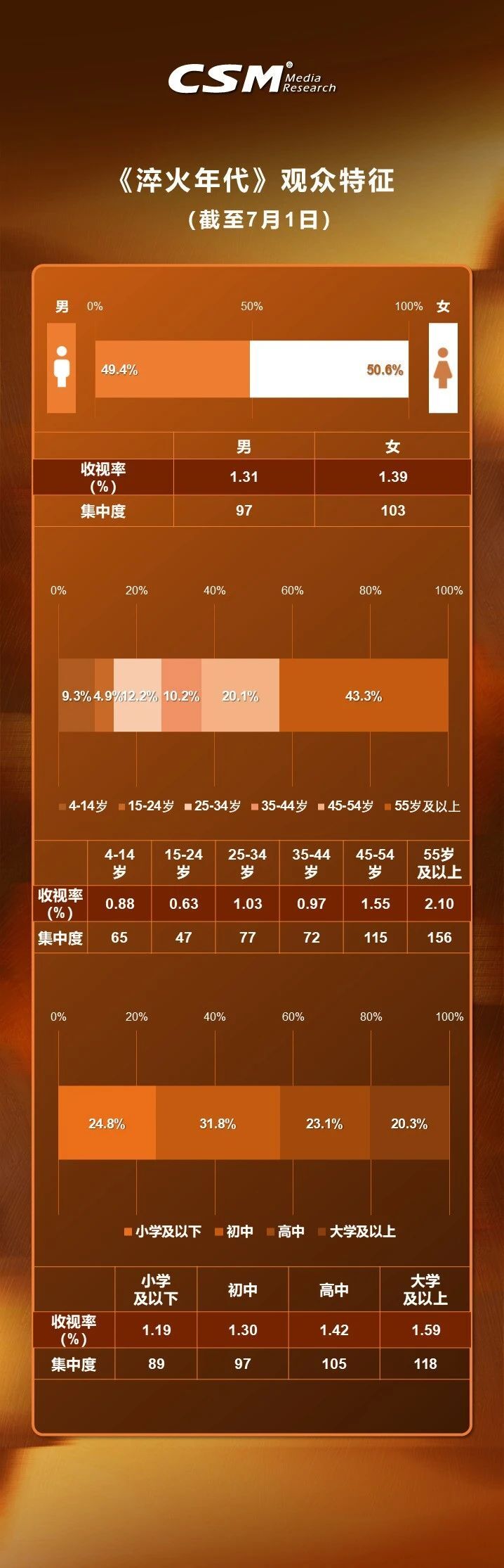 大学及以上高学历观众对《淬火年代》尤其偏爱(集中度118%)。