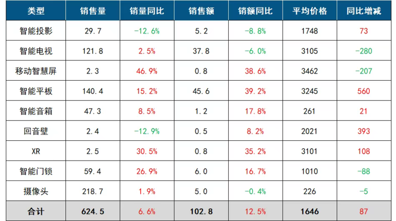 数据来源:洛图科技(RUNTO),单位:万台,亿元,元
