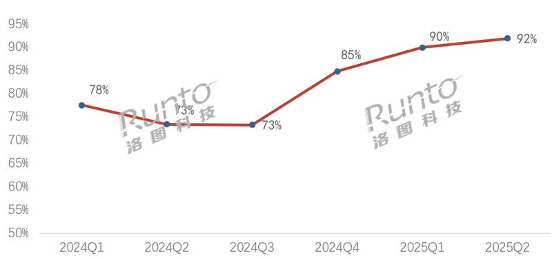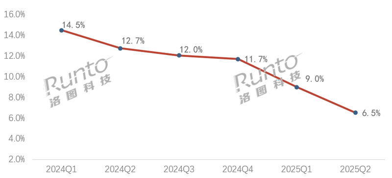 数据来源:洛图科技(RUNTO)线上监测数据,单位:%