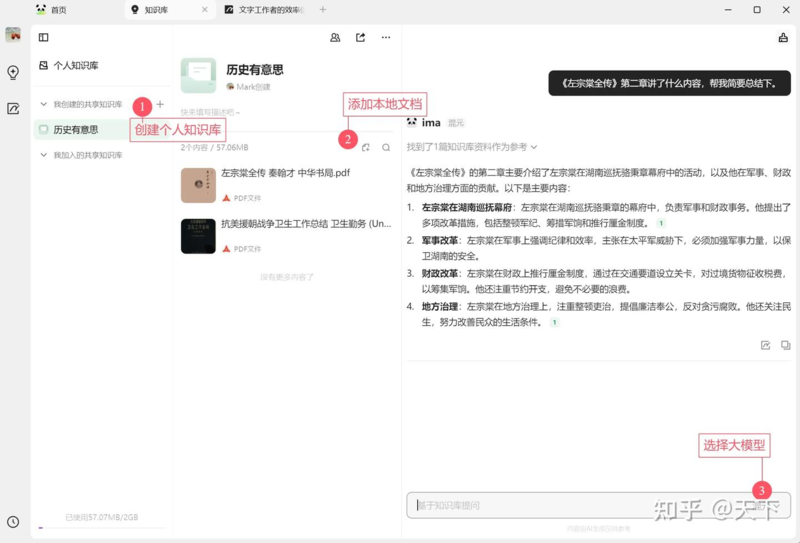 在ima里解决这个问题很简单,你可以要求它基于你给它的资料进行分析和回答。如下图所示,点击加号创建个人知识库,然后在知识库里点击加号添加本地文档,可以是pdf、word文档或者是图片,也可以是你给它指定的网页链接。然后你就可以向它提问了,对话框右侧可以选择混元或者Deepseek R1。