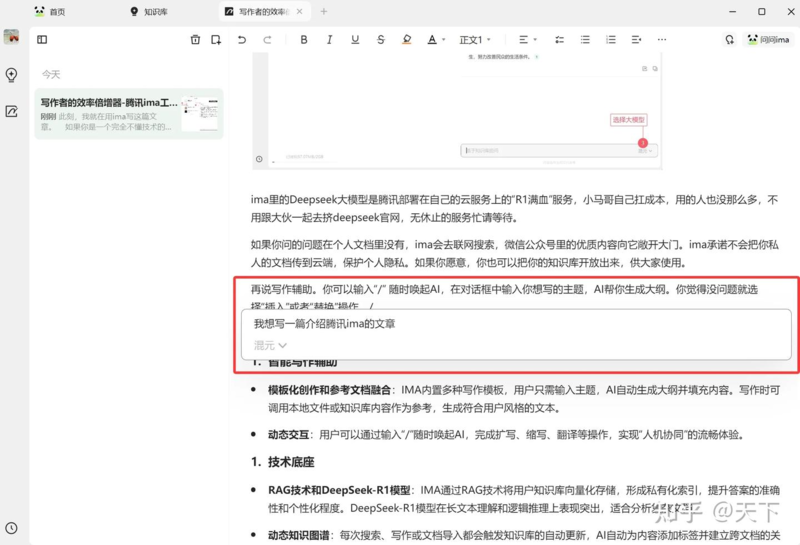 说的就是腾讯ima(我叫它"一马",一马难挤^__^)。此刻,我就在用ima写这篇文章。