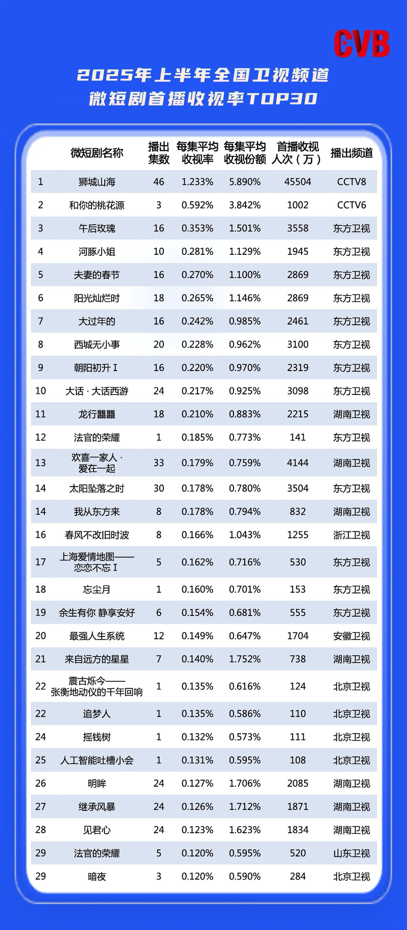 CVB数据发布:2025年上半年全国微短剧收视盘点