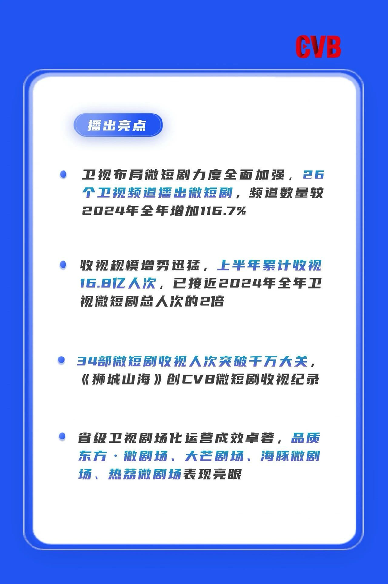 【流媒体网】摘要:2025上半年卫视微短剧收视人次16.8亿,东方卫视微剧场领跑市场。