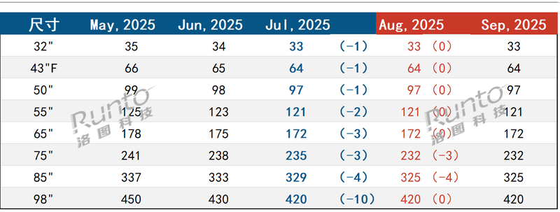 2025年7月液晶电视面板市场特点及2025年8月预测