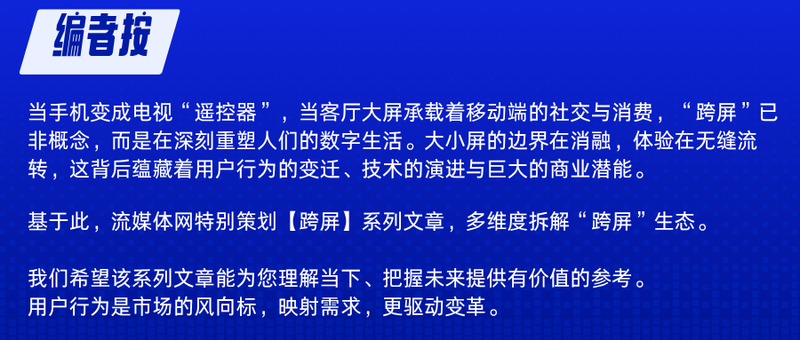 而用户的跨屏行为正倒逼行业各方加速构建跨屏生态体系,通过技术融合与场景创新,满足用户对内容无缝流转和体验一致的更高需求。