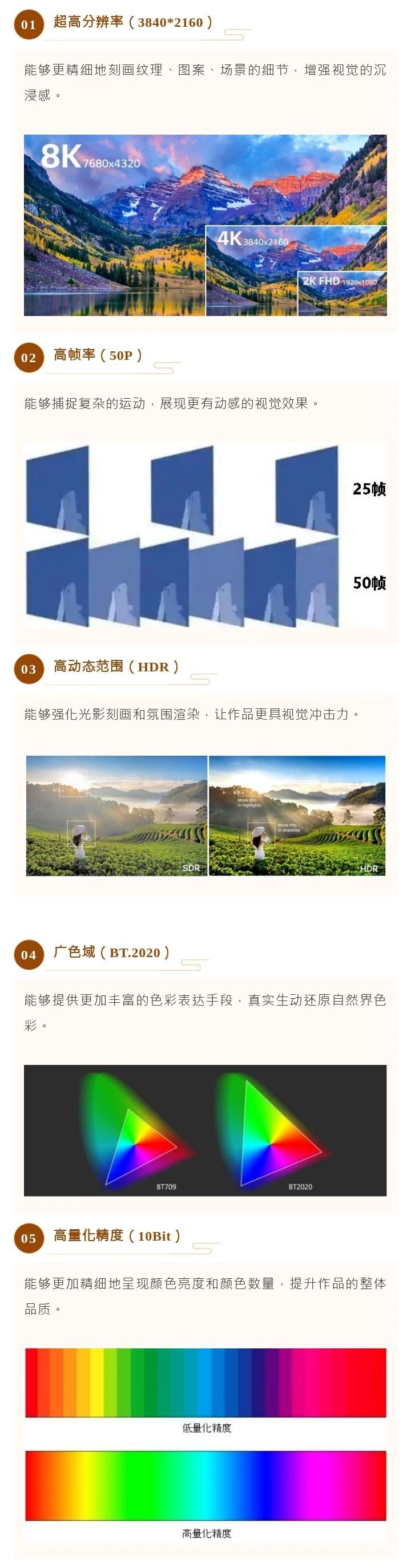 佛山广电网络计划在年内将新增13套4K超高清频道。4K超高清具有超高分辨率、高帧率、高动态范围、广色域、高量化精度等技术特性,分别从视频的像素数量、动态流畅度、明暗层次、色彩的丰富度以及色彩和亮度的平滑度等五个维度综合提升画质的细腻度,提升视觉体验。为广大用户带来色彩更真实、细节更丰富,体育赛事、演唱会等场景“身临其境”。
