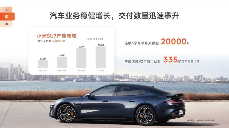 汽车业务稳健增长:小米汽车交付量突破30万大关,豪华SUV小米YU7正式上市,开售18小时大定突破24万台;