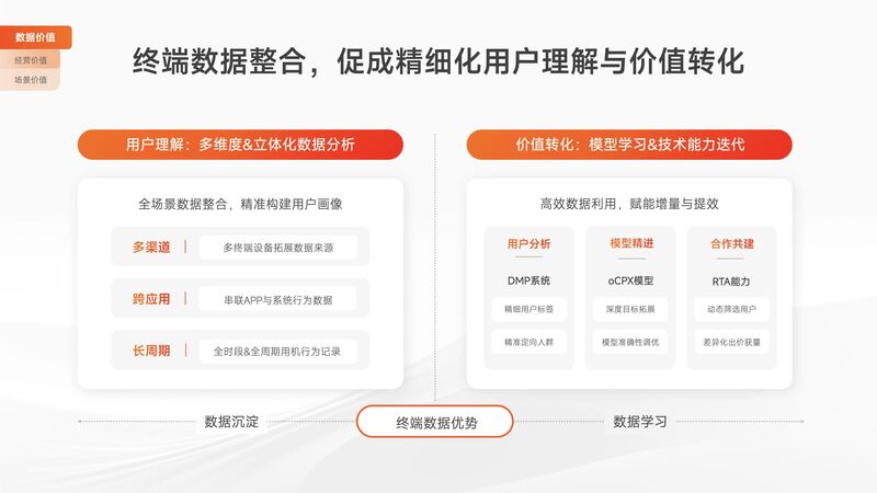 ▍数据价值:基于终端数据沉淀,多维度、立体化分析用户行为,反哺模型学习实现精准用户理解与转化;
