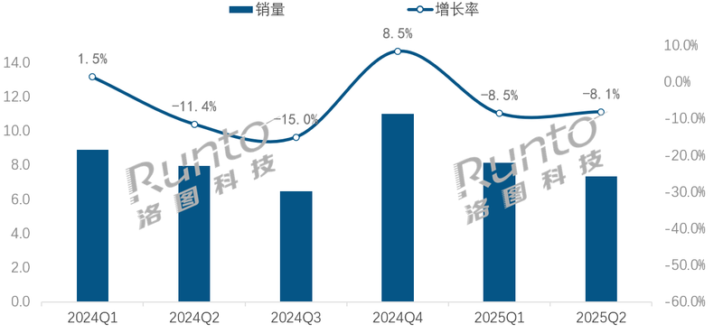 根据洛图科技(RUNTO)最新发布的《中国回音壁零售市场月度追踪(China Soundbar Retail Market Monthly Tracker)》报告数据显示,2025年上半年,中国回音壁线上全渠道平台的销量为38.9万台,同比小幅增长1.8%;销额为3.4亿元,同比增长15.2%。