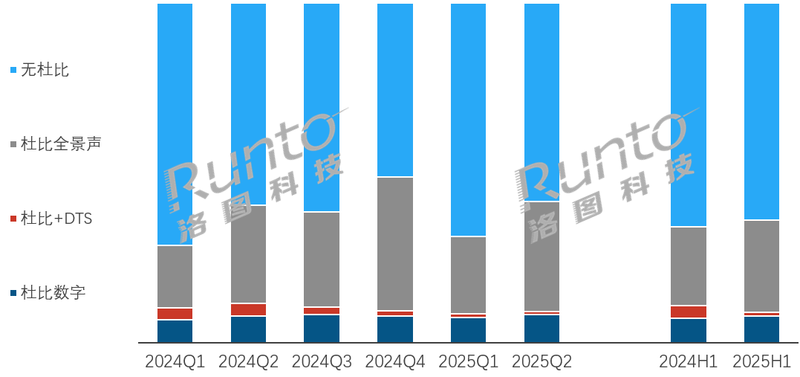 根据洛图科技(RUNTO)数据显示,2025年上半年,回音壁产品在传统主流电商平台中,杜比全景声解码功能的销量渗透率达到了27.3%,较去年同期增长4.0个百分点。