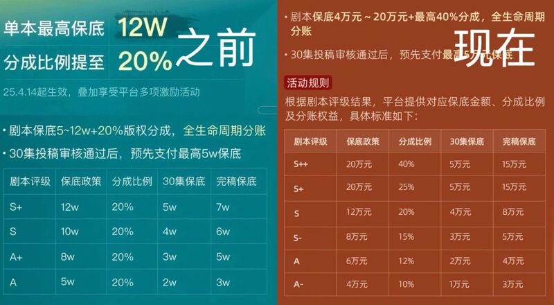 一位拥有小型编剧工作室的编剧也有些悲观,她同《新声Pro》透露,「这是一项同普通人关系不大的政策,自13号起,她工作室的保底将会有所下调」,本质上是一个激励与淘汰并存的筛选机制。