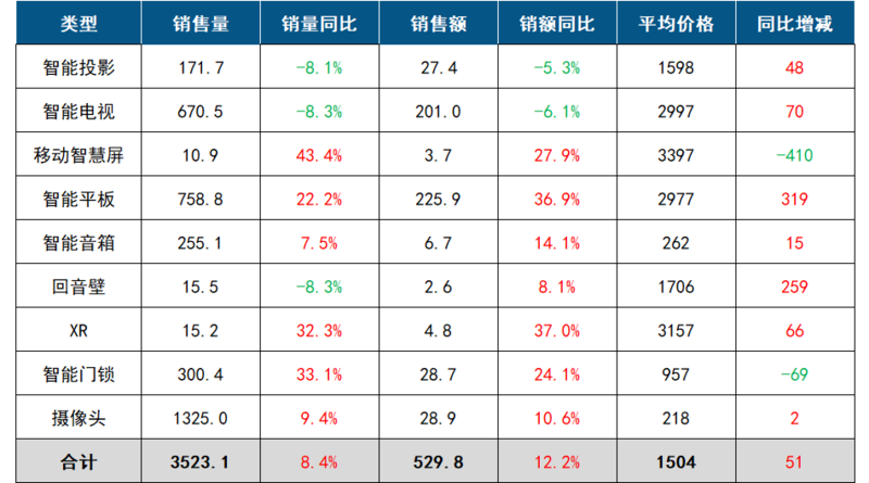 数据来源:洛图科技(RUNTO),单位:万台,亿元,元