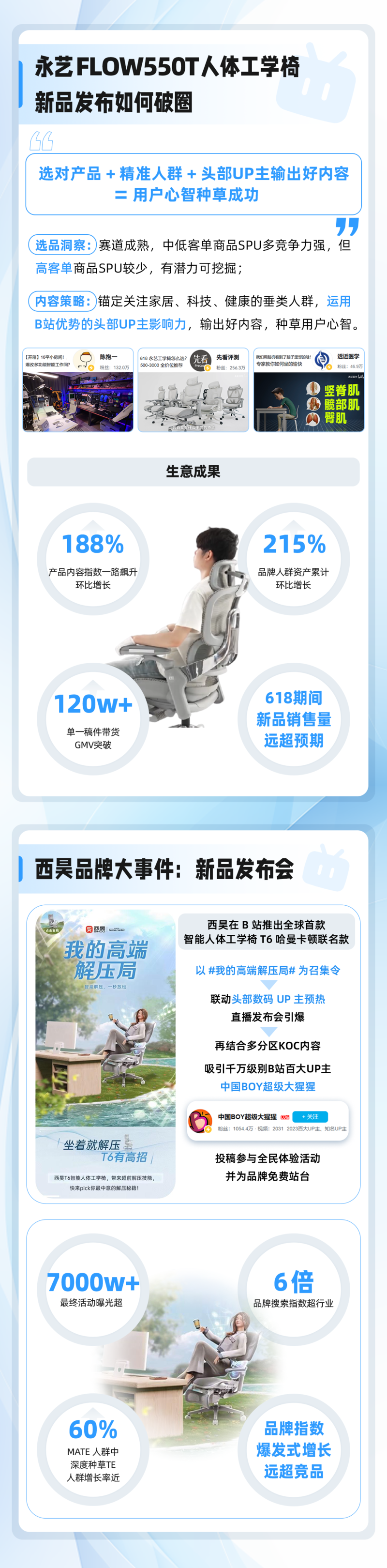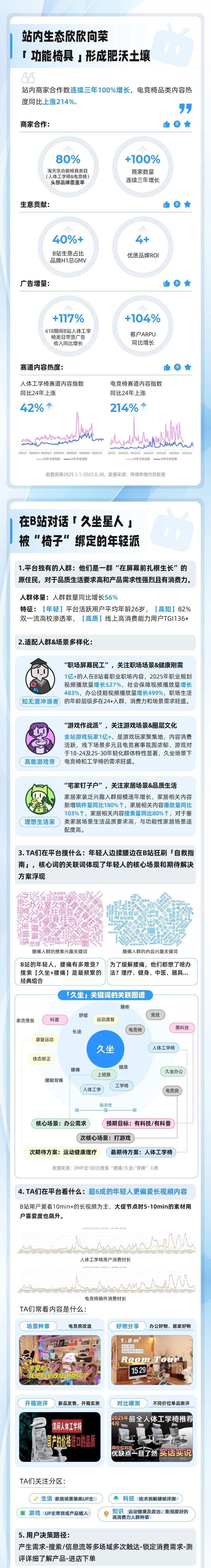 作为超 3 亿月活的Z世代生活灵感阵地,B站承载着用户对「兴趣生活」的差异化追求。功能椅具已从办公工具进化为生活方式载体——居家或办公场景下的腰椎守护站、深夜赶稿的灵感支撑点、电竞开黑的久坐搭档,久坐场景高频化、健康需求升级化、消费决策情绪化,这正是 B站「功能椅具」的独特生态基础。依托UP主硬核测评、真实体验与强互动生态,B站成为功能椅具的必投媒体,同时也掀起了功能椅具走进千家万户的新趋势。