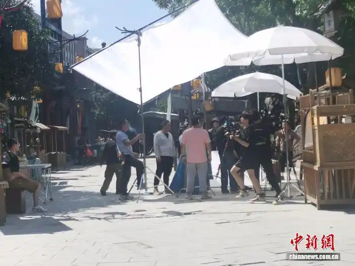 近日,横店华夏文化园里剧组拍摄现场。 孙婧宜 摄