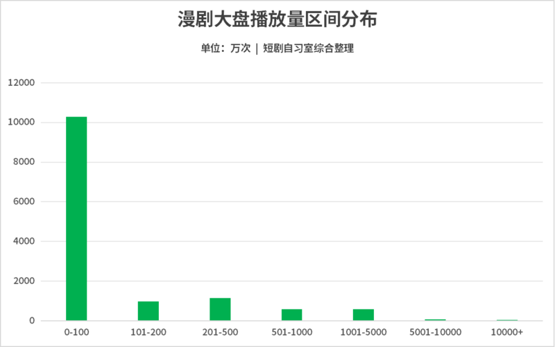短剧自习室在调研过程中发现,以大盘14000部漫剧为样本测算,超过200万播放量的漫剧占比在17%左右,播放量低于100万的漫剧超过八成。
