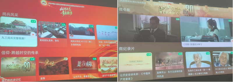 首先遗憾的是,OTT没有直播,所以,我们此次讨论的并非阅兵直播,而是其他。比如,各家对总局的“山河见证——我们的抗战记忆”这个抗战胜利80周年的命题作文完成度如何。