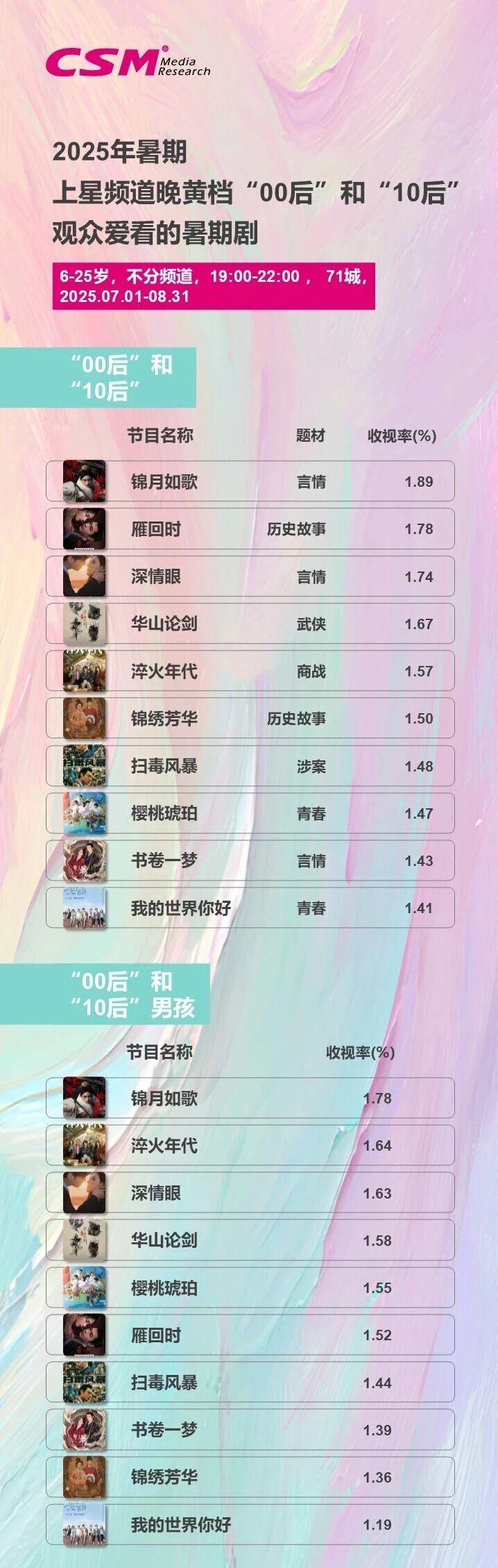 暑期晚黄档“含青量”攀升,“90后”坐稳客厅C位