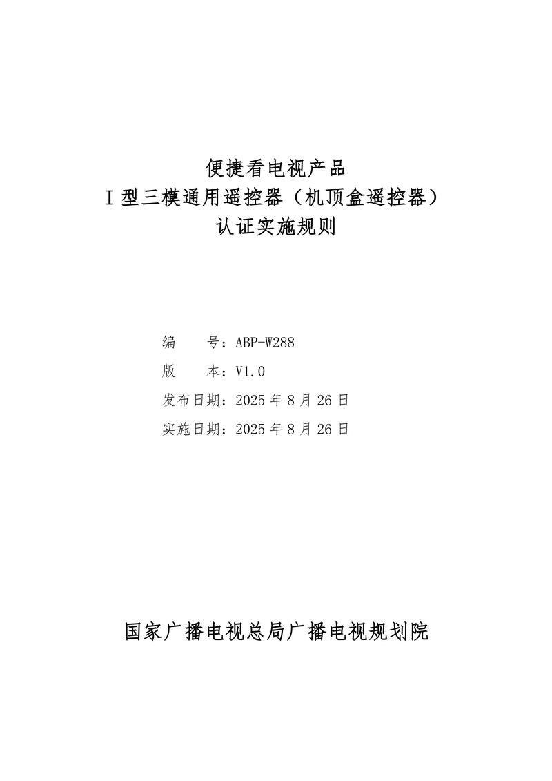 I型三模通用遥控器(机顶盒遥控器)认证实施规则