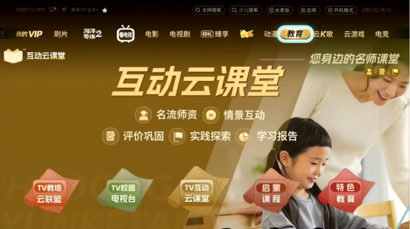 (电视端):电信机顶盒(IPTV)【首页】-【教育】栏目。