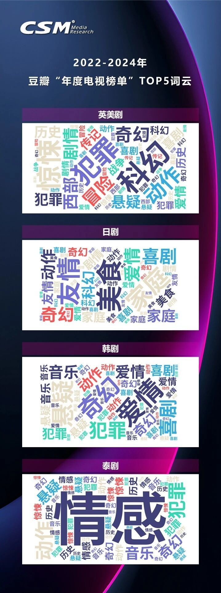 从2022年至2024年,根据豆瓣“年度电视榜单”TOP5,海外各地热播剧在不同的文化背景催生下,呈现鲜明的地域特色和多元的类型格局。