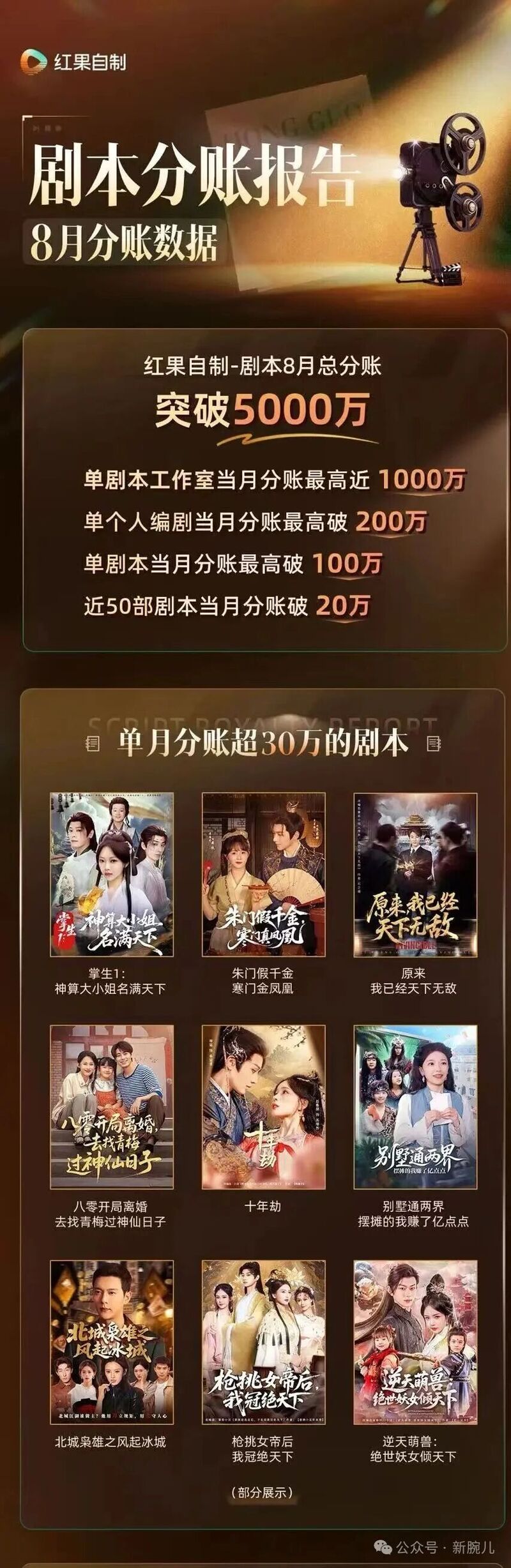 红果短剧8月剧本分账超5000万