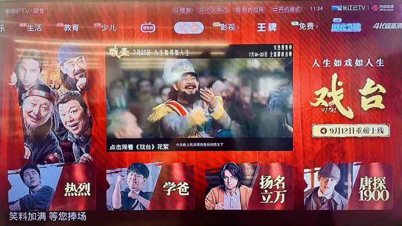影片上线后,以IPTV为代表的全国联动资源更是全面铺开,各大平台都给予《戏台》首页推荐位等核心资源,并在各相关入口、页面中多次露出。不同地区的大屏平台还根据本地观众偏好,进行差异化推荐。比如在戏曲氛围浓厚的地区强化“戏曲与传统文化”的标签;而在一二线城市,则突出“荒诞喜剧”的现代表达。这种区域化运营能力,也让影片实现了跨圈层的传播。