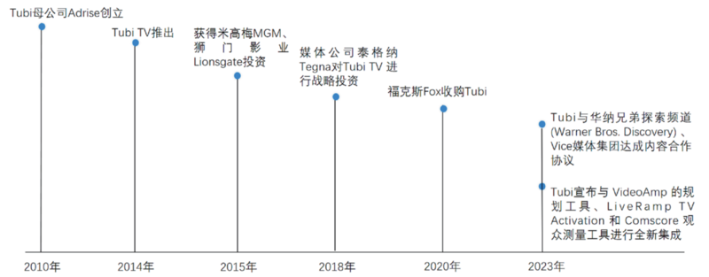基于AdRise与全球一些最大的内容制作商合作,帮助Tubi TV获得了向家庭提供大量免费内容的能力。AdRise于2014 年推出了 Tubi TV,致力于做成全世界最大的免费流媒体电视库。Tubi TV为观众提供海量免费电影和电视节目库,包括动漫、亚洲热门电视剧和电影、国际电影、动画片和儿童节目、经典剧集、喜剧、烹饪、纪录片、戏剧、健身、新闻、真人秀和科幻等。这与当时Netflix、Hulu等热门的付费订阅视频点播 (SVOD) 服务形成互补,显著拓展了媒体消费者可观看的内容领域。