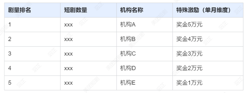 【特殊激励规则说明】本次剧量排行榜特殊激励面向每月剧量排名前5名机构,上架数统计10.1起12.30止,每月放榜公示排名
