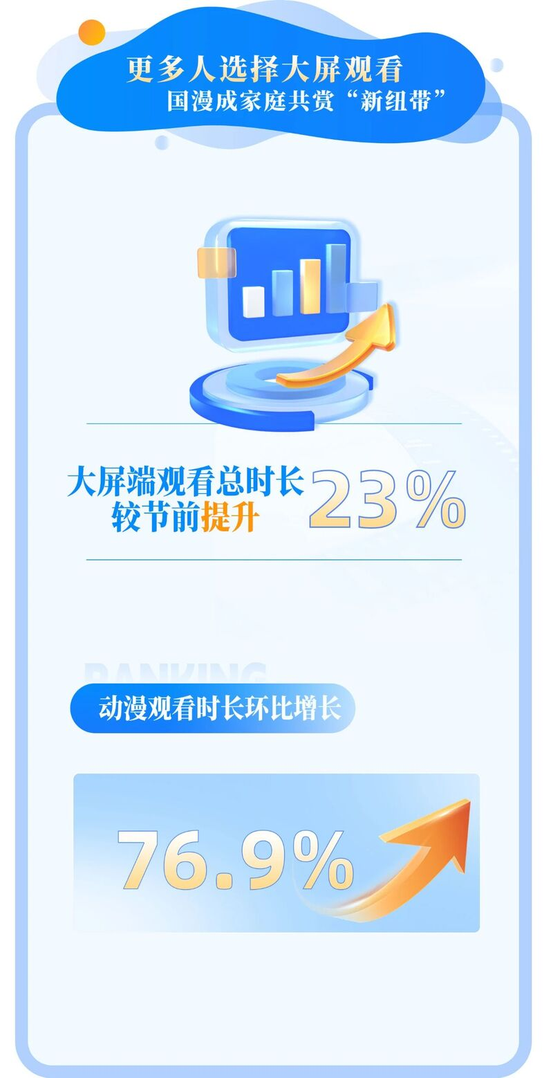 今年国庆假期,大屏端的观看时长同比增长23%,其中动漫观看时长激增76%。