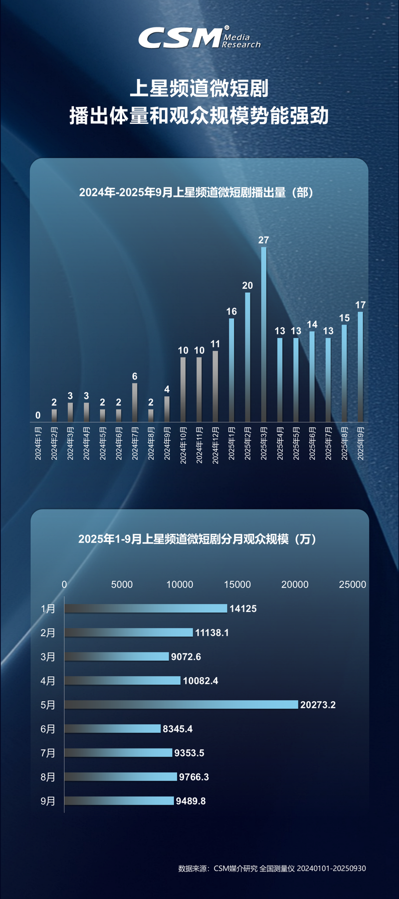 今年8月,国家广播电视总局《进一步丰富电视大屏内容 促进广电视听内容供给的若干举措》(简称“广电21条”)出台,其中包括鼓励支持优秀微短剧进入电视播出等各项举措的明确表述成为行业热议话题。微短剧电视播出效果如何?本文使用CSM全国测量仪数据对2025年1-9月上星频道微短剧全天播出与收视进行简要梳理与分析,为行业进一步聚焦电视大屏端微短剧优质内容创作与传播研究探索提供数据参考。