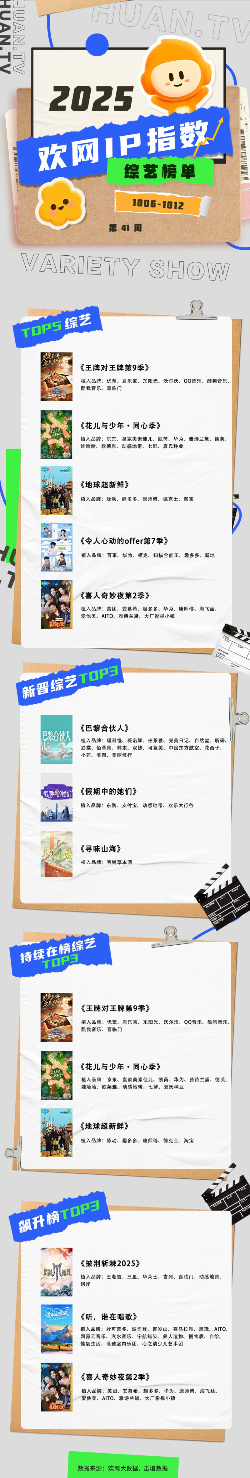 一周热力 | 欢网IP指数 综艺&电视剧榜(1006-1012)