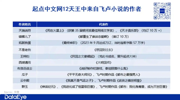 其二,行业影响力显著。飞卢被誉为网文界"黄埔军校",番茄黑马榜60%的作者(如愚狂大叔、开心的咸鱼、我不吃卤蛋等)、起点12位天王中10位均源自飞卢,其内容创作能力获全行业认可。