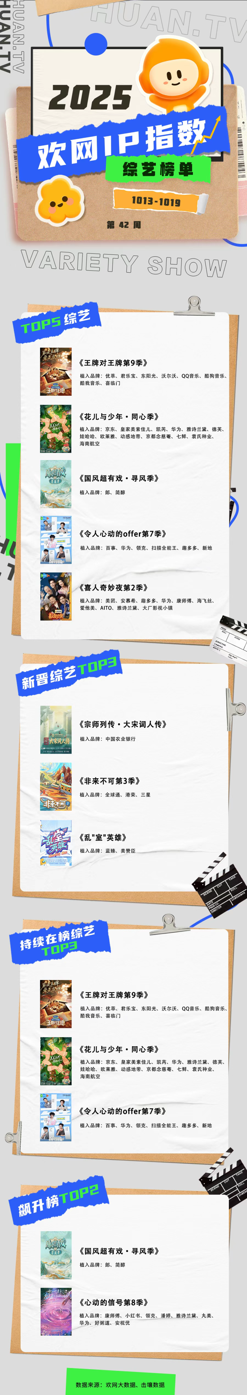 一周热力 | 欢网IP指数 综艺&电视剧榜(1013-1019)
