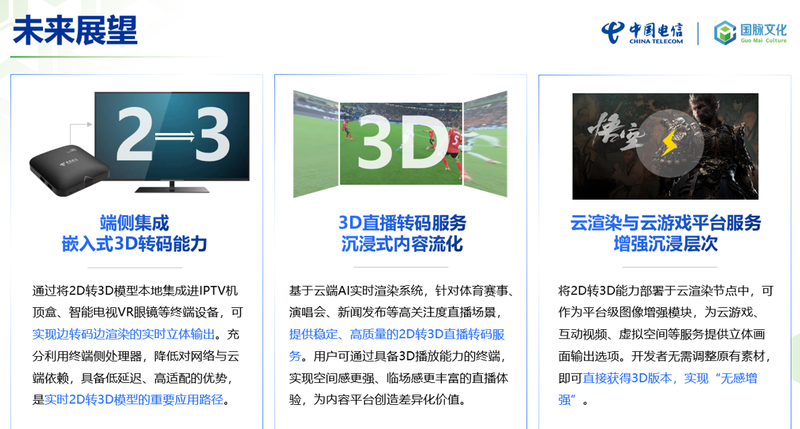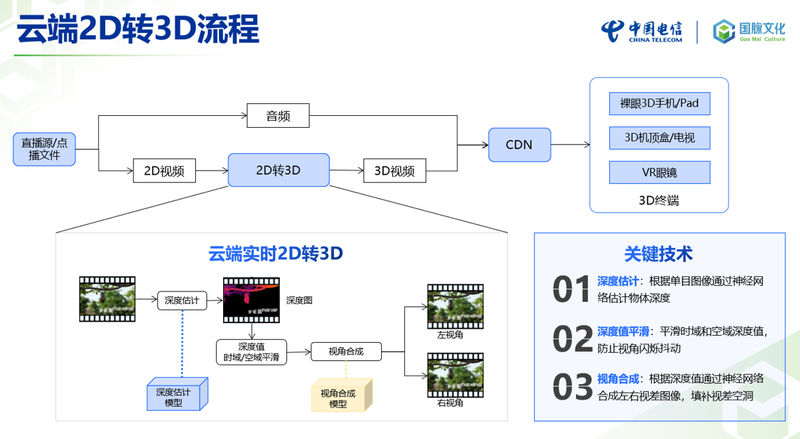 直播转码服务:将云端3D转码作为PaaS能力对外开放,为演唱会、体育赛事等高价值场景提供3D直播服务,兼容各类3D播放设备;