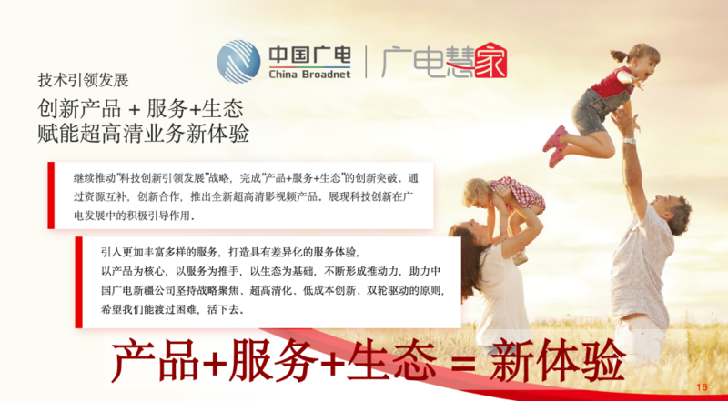 超高清是智慧家庭的关键环节,近年来我们持续深耕终端领域,联合合作伙伴,通过移动、有线、宽带、固网一体化服务,帮助运营商拓展盈利空间。在此,我们诚挚邀请更多合作伙伴加入泛生态圈,共建开放共赢的合作模式。