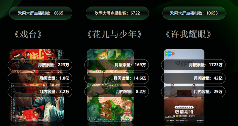 例如,电影《戏台》在大屏点播指数高,在小红书月搜索量基本超200万,非常高,和点播指数能匹配上。