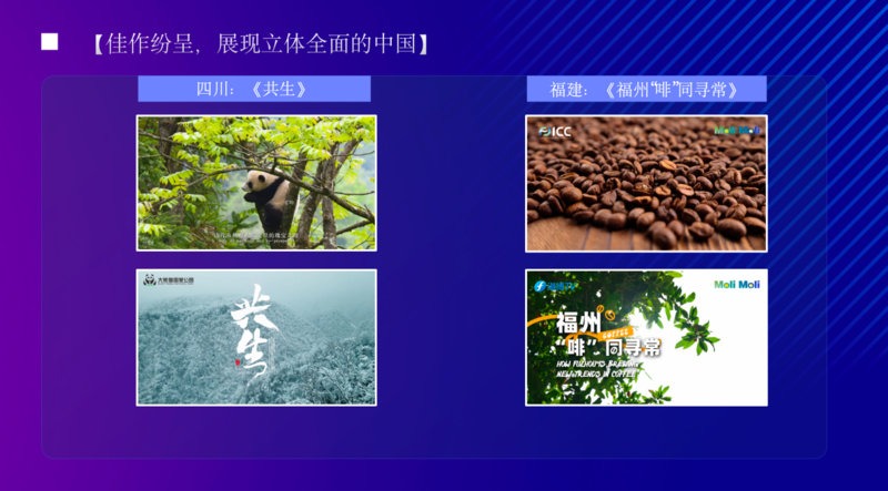 这些作品题材丰富、形式多样、制作精良:四川的《共生》通过珍贵的大熊猫影像,展现人与自然和谐共生的生态画卷;福建的《福州“啡”同寻常》以咖啡为媒介,演绎中西文化的创新融合;贵州的《带着AI看贵州》运用前沿科技视角,揭示地质奇观的国际价值;甘肃的《反诈灵魂十问》创新运用AIGC技术,让正能量传播更具吸引力。此外,还有其他优秀作品从经济发展、社会进步、文化传承等多个维度,生动展现了新时代中国的蓬勃生机与无限活力。