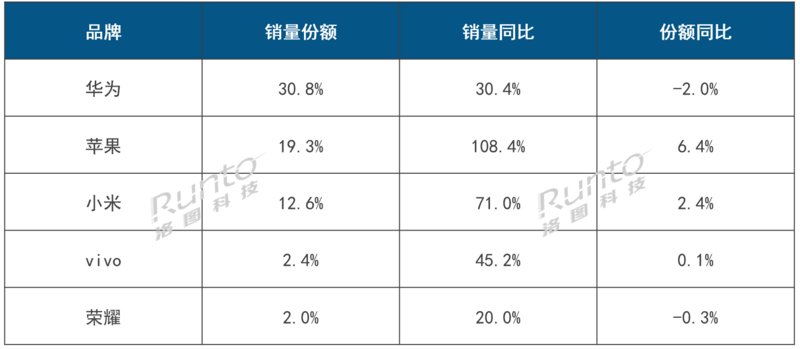 小米与华为的合计市场销量份额高达92.4%,较去年同期增长4.6个百分点,市场集中度进一步提升。
