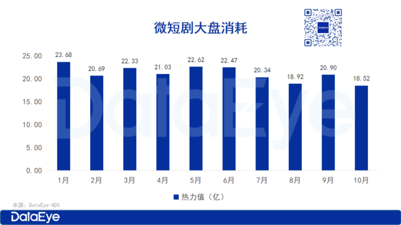 本月大盘出现大幅下滑,主要因为10月微短剧投放力度减小。在免费模式的冲击下,不少微短剧收紧投流计划,导致热力值有所下降。
