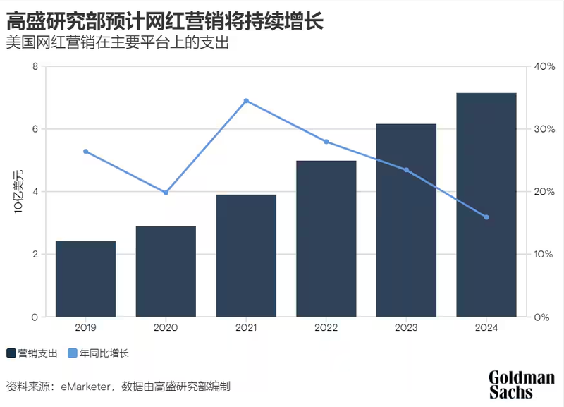 数字时代的最大发展及产物之一,便是许多拥有个人品牌和特定在线受众的个体创作者。高盛研究部的互联网股票研究分析师Eric Sheridan在团队报告中写道,这个生态系统的扩张是由多种原因促成的,包括数字媒体消费的增长、技术创新降低内容创作的门槛等等。TikTok、抖音等较新平台的出现为用户开启了创作的新世界,而Facebook和YouTube等传统平台也相继推出了新模式,如短视频分享、直播频道和用户原创内容的其他形式。