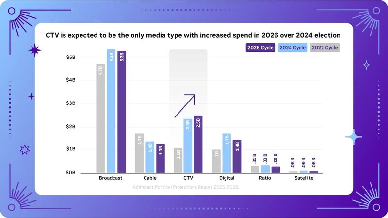 2026 年将成为“本地化定向战役”的拐点——得益于中期选举。政治广告会率先示范:自助式电视广告与 AI 生成创意的组合可以帮助候选人提升投票动员。看到这一点,律师事务所、美发沙龙、房产中介与其他区域性业态将会跟随。