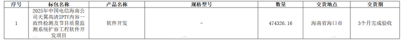 海南电信:2025年天翼高清IPTV内容一致性检测及节目质量监测系统扩容工程软件开发项目-询比公告