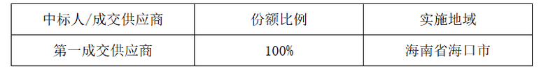 1.2.2成交供应商数量:1个,每个成交供应商对应的份额如下: