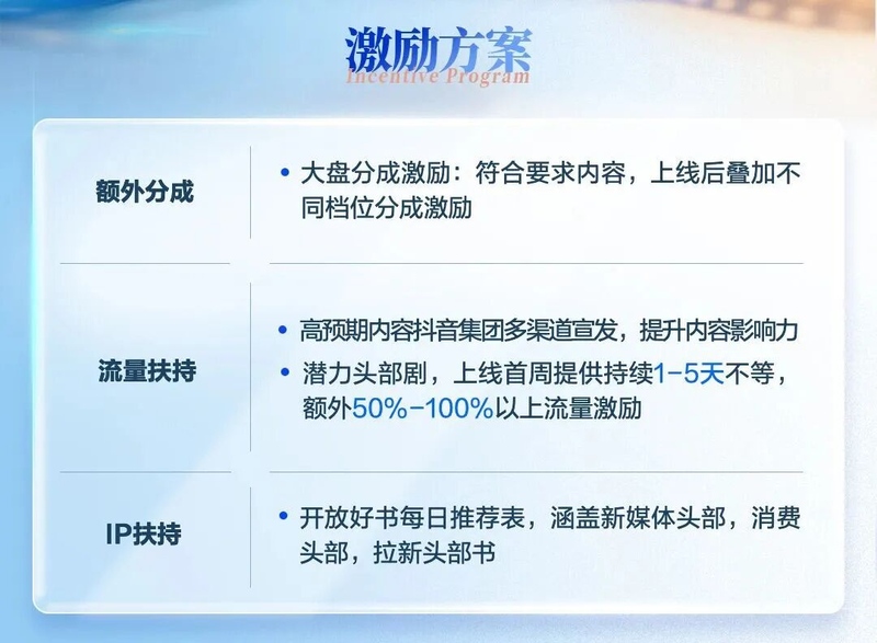 12月3日,抖音集团短剧版权中心,发布重点题材激励计划,布局多个重点品类题材,可获得百万激励。主要包括四大题材,都市,年代,历史和悬疑。