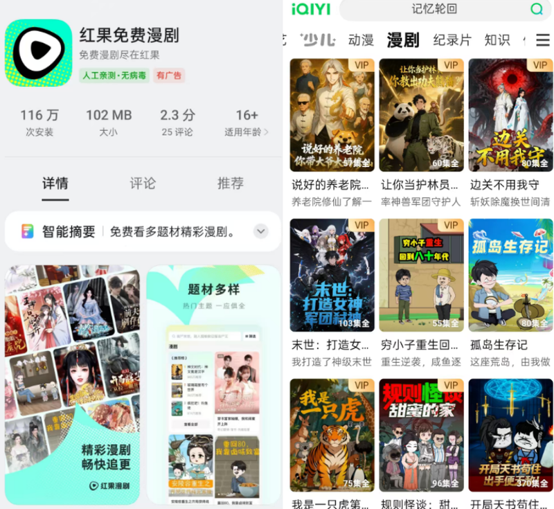 11月18日爱奇艺财报透露正拓展漫剧业务并开发自制漫剧;11月19日正式上线漫剧专属频道,聚合AI剧、动态漫、沙雕漫等多元形态内容。