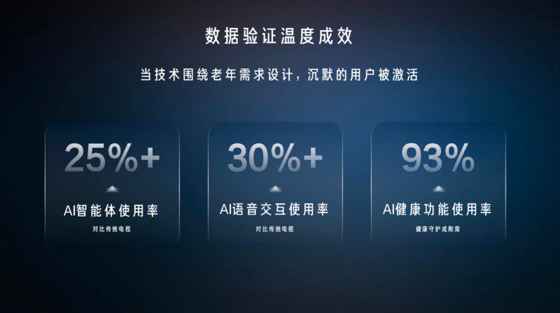 海尔适老化方案的市场表现,印证了“尊重用户需求”的商业逻辑。数据显示,其适老化电视的AI智能体使用率较传统电视提升25%以上,AI语音交互使用率提升30%以上,93%的用户会主动使用健康功能。这一结果打破了“老年群体排斥新技术”的固有认知,证明只要技术真正贴合需求,老年用户的学习意愿和使用主动性完全可以被激发。