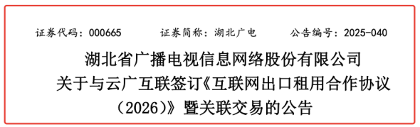 动作二:为有效降低成本,同意与云广互联签订《互联网出口租用合作协议(2026)》